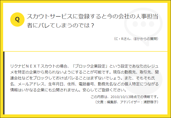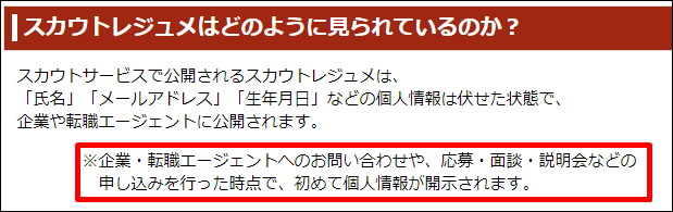 これまで説明したように、リクナビNextにおいては個人情報は非公開にするなど、「スカウトサービス」の利用によって個人を特定されにくくする工夫がこらされています。