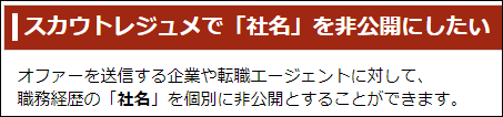 「社名の非公開」をすることで、あなたが勤める会社名(以前の勤務先・現在の勤務先)を非公開にできます。